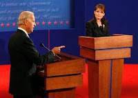 Sarah Palin, on the other hand, strung two or three complete sentences together consecutively, which means that her performance will be roundly hailed as a success. The fact, however, is that no matter how much she said or how confidently she said it -- she really didn't say much of anything. The McCain campaign handlers -- and needless to say, that's whose hand was up Palin's ass the entire time -- pulled a really neat trick by having their girl make it clear almost right off the bat that she wasn't going to answer any of those pesky questions being asked of her by moderator Gwen Ifill because, well, Ifill's part of the mainstream media and, well, Sarah Palin is a maverick. (I guess that's what mavericks do -- they don't play by the rules and answer questions, despite having agreed upon the debate format ahead of time.) What this did though was allow Palin to filibuster about anything she felt like at any given time. It allowed her to essentially give an extended speech divided into dozens of small parts rather face the danger of being tripped up by honest, unscripted interaction.