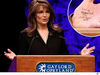 As much as I hate to shirk my responsibility to you nice folks, I really don't have a damned thing of interest to add to the Schadenfreudian giggle-fest that's followed the revelation that Palin needed to jot down the most basic talking points on her left hand so she'd remember them during her Tea Bagger convention appearance over the weekend. The bottom line is that by now you've heard it all before and, kind of like my point about James O'Keefe last week, Palin is such a polarizing figure that there isn't a thing I could say that would change anyone's mind about her. You either love the entirely for-profit brand known as Sarah Palin or you hate her (although only one of these opinions comes with the caveat that you've got an IQ larger than your shoe size).