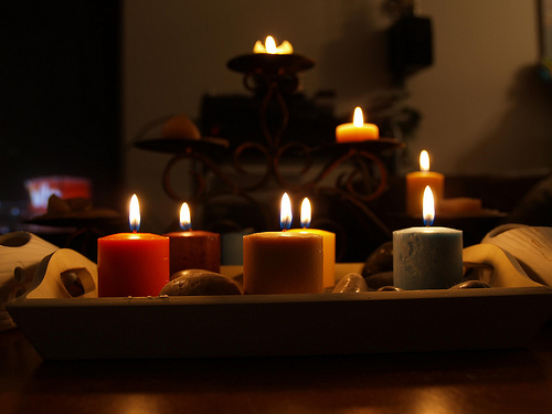 "That's the exact same thing she said about you -- and it sounded like bullshit coming from her too," I say, threading the two of us through the tight spaces between guests and keeping my focus forward at all times. Out of the corner of my eye, I see Abby continuing to look around -- inquisitively inspecting. The flickering candlelight casts deep, long shadows in all directions. They alternately illuminate and swallow faces and create living art on the high walls. Poe's