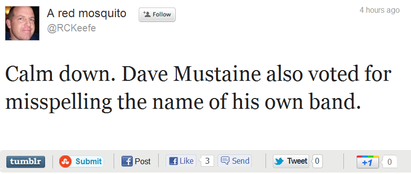 New York Daily News: Megadeth's Dave Mustaine Backs Santorum/2.15.12