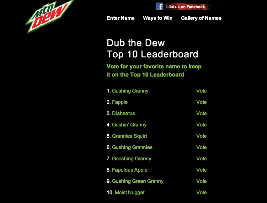 Mountain Dew decided to crowdsource the name of its newest God-awful drink via an online contest.